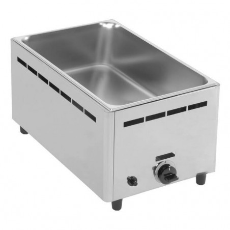 Le bain marie professionnel à gaz est fonctionnel et pratique. Il est entièrement conçu en acier inoxydable avec cuve GN1/1 emboutie de 150mm de profondeur, soit 21 litres, et extractible (bacs et couvercles GN non fournis).