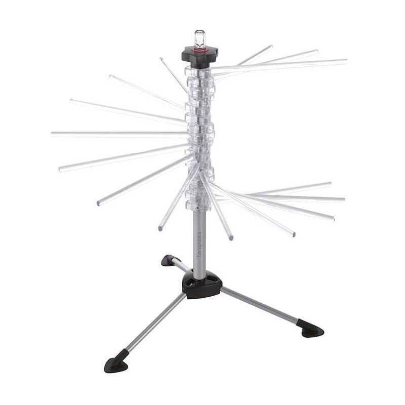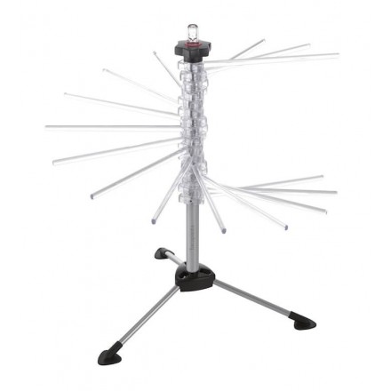 Séchoir à pâtes Tacapasta de la marque MARCATO, permet d'étendre plus de 2kg de pâtes fraîches, colonne centrale en acier inoxydable, 16 bras de 20cm en polycarbonate alimentaire, pliable, disponible 4 coloris