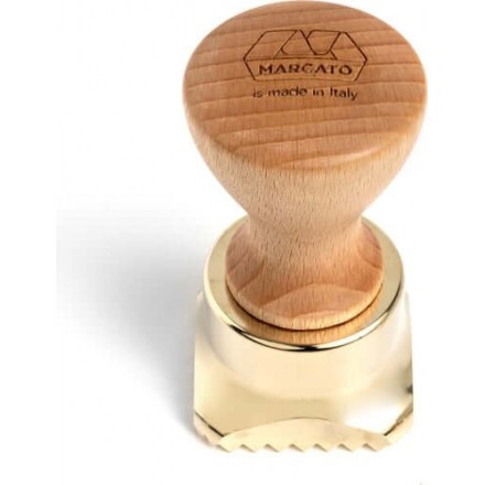 Moule à ravioli MARCATO à coupe carrée 45x45mm, corps en laiton, disque central en aluminium anodisé, manche en bois massif, disponible en 4 coloris: Bronze Cuivre, Or, Champagne et Gun Métal