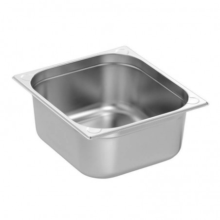 Le bac gastronorm GN2/3 est entièrement fabriqué en inox avec une finition satinée. Il est empilable, passe au lave-vaisselle et au four, les bords sont non renforcés.