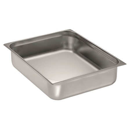 Le bac gastronorme GN2/1 est entièrement fabriqué en inox 18/10 de qualité supérieure avec une finition brillante. Il est empilable, passe au lave-vaisselle et au four, les bords sont non renforcés.