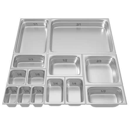 Le bac gastronorme GN2/1 est entièrement fabriqué en inox 18/10 de qualité supérieure avec une finition brillante. Il est empilable, passe au lave-vaisselle et au four, les bords sont non renforcés.