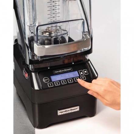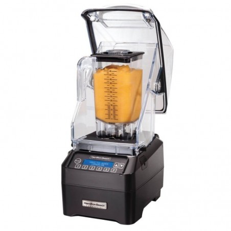 2,517.06 € TTCBlender professionnel ECLIPSE de HAMILTON BEACH avec récipient en tritan sans BPA de 2L, 2 vitesses de rotation, 5 touches de sélection pour les cycles, 100 cycles préprogrammés + pulse, couteau inox, système wave action, fonction minuterie avec arrêt automatique, couvercle de protection Quiet Shield Sensor ultra silencieux, idéal pour 75 à 99 boissons/jour