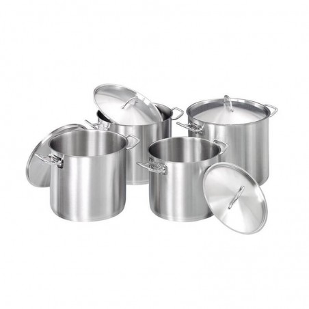 217.11 € TTCSet of 4 professional stainless steel stockpots in 18/10 stainless steel (AISI-304) including 4 stockpots with lid, with cold handles, induction compatible, pouring edge