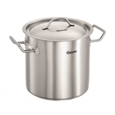 The stainless stock pot also has a stainless steel lid and pouring rim, and is induction, gas and electric compatible.