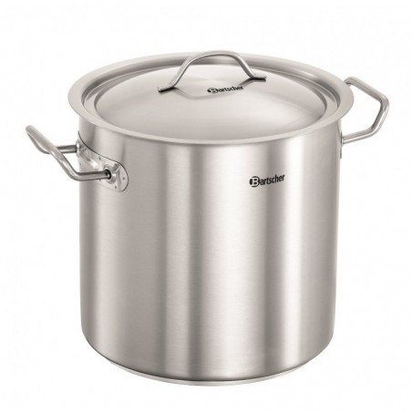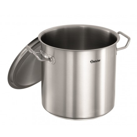 The stainless stock pot also has a stainless steel lid and pouring rim, and is induction, gas and electric compatible.