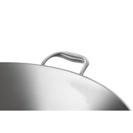 71.09 € TTCXXL stainless steel wok frying pan, diameter ø510mm with flat bottom ø70mm, capacity 22L, handle with counter-handle, height 195mm, stainless steel lid included, induction compatible, 3.2kg