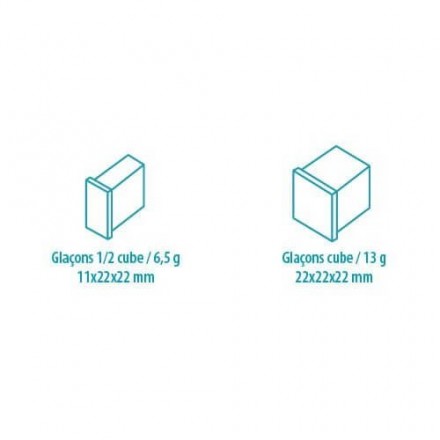 Le glaçon cube permet aux boissons de se refroidir en quelque secondes seulement grâce à ses 6 côtés qui offrent une grande surface de glace en contact avec la boisson. Les glaçons cubes sont petits, font du bruit, s'entrechoquent et créent une ambiance conviviale. Ils permettent d'occuper beaucoup d'espace dans le verre, idéal pour les fast-foods et snacks.