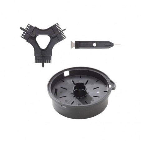 Cleaning tool for the 5.8 or 10mm Macedonia grid for vegetable or combined ROBOT COUPE cutters. Includes 1 reversible grill holder, 1 Macedonia grill cleaning tool 5, 8, 10, 12 and 14mm and 1 scraper tool