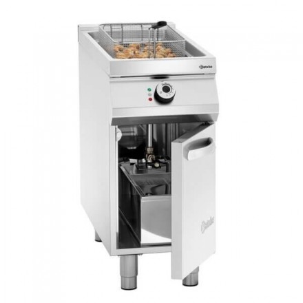 La friteuse professionnelle électrique Barstcher est entièrement conçue en acier inoxydable 18/10 de qualité, et sera adaptée pour être installée dans toutes les cuisines professionnelles, associatives, pour une production de 32kg de frites à l'heure (2kg par cycle de 5-6 minutes).