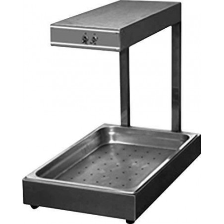 253.97 € TTCProfessional all-stainless steel electric fry warmer with 1kW infrared heating tube, stainless steel heating element, lighting, included GN1/1 65mm deep tray, on/off switch