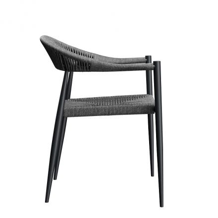 This armchair has a steel structure with anthracite epoxy finish, with seat and back woven in 5mm twisted polyethylene green, ideal for furnishing restaurant terraces, bistros, brasseries and hotels with charm and elegance!