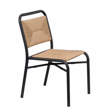 154.80 € TTCThe FERNAND chair with an epoxy-coated aluminum frame, twisted polyethylene seat and backrest, stackable, UV and weather resistant, ideal for use on a terrace, seat height 46cm, tube thickness 1.8mm, tube diameter 28mm