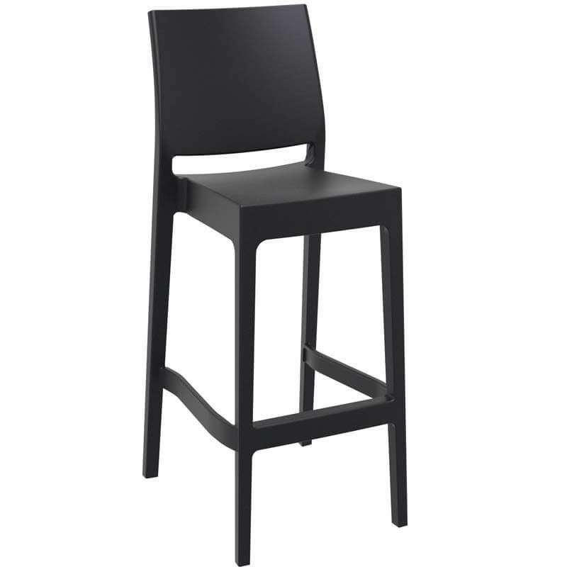 98.18 € TTCChaise haute d'extérieur empilable avec structure en résine et fibre de verre injectées à haute pression, résistante aux intempéries et aux UV, pieds avec patins, repose pieds, couleur noir, hauteur assise 75cm