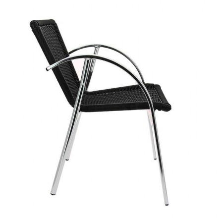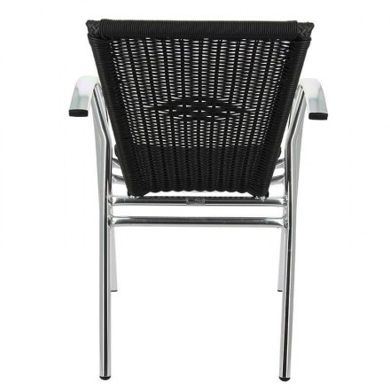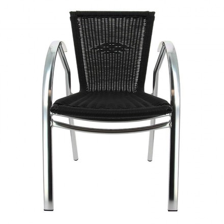 96.89 € TTCFauteuil pour terrasse de bar empilable avec structure en aluminium anodisé, dossier et assise en fils ronds de polypropylène tressé noir, utilisation extérieur, ultra léger et robuste, résistant aux UV et aux intempéries, hauteur d'assise 43cm