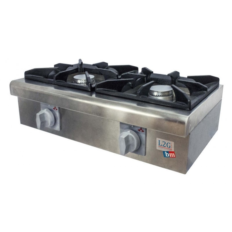 547.62 € TTCRéchaud à gaz à poser avec 2 brûleurs amovibles de 6kW chacun (12kW au total), grilles en fonte 300x300mm, 2 niveaux de réglage de la puissance, thermocouple, arrivée gaz: 1/2", équipé en butane/propane avec injecteur de rechange gaz de ville (méthane)