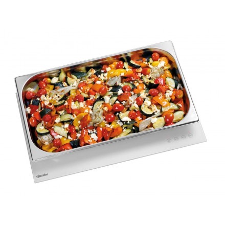 106.65 € TTCWhite induction hotplate that can be used as a tabletop or built-in appliance, ideal for buffets or meal distribution and Front-Cooking - 3 temperature levels 50°C|70°C|95°C that can be selected using touch control, included sealing strip for recessing the device
