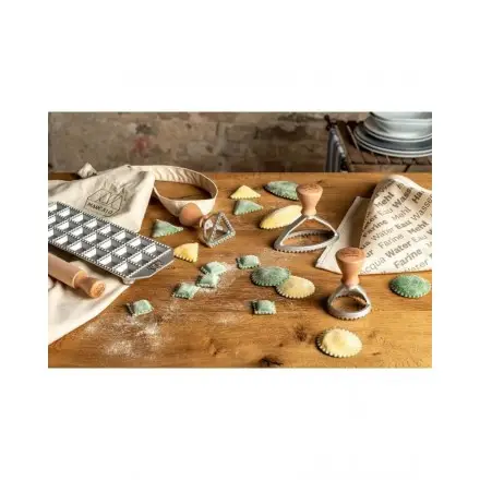 Réalisés en aluminium moulé sous pression et en bois massif, les moules Marcato sont résistants et faciles à utiliser et assurent une coupe nette de la feuille. Ils peuvent être utilisés aussi bien pour la réalisation de ravioli que de biscuits, ou tout autre hors d'œuvre sucrés ou salés!