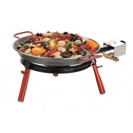 21.10 € TTCPaella pan made of polished steel ø380mm, bottom diameter ø330mm, heat-resistant handles lacquered in red - the paella pan is also very suitable for the preparation of hash browns, minced meat, pan-fried gyros or chili con carne... - (burner and tripod not included)