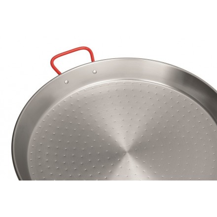 Paella pan made of polished steel ø600mm, bottom diameter ø535mm, heat-resistant handles lacquered in red - the paella pan is also very suitable for the preparation of hash browns, minced meat, pan-fried gyros or chili con carne...
