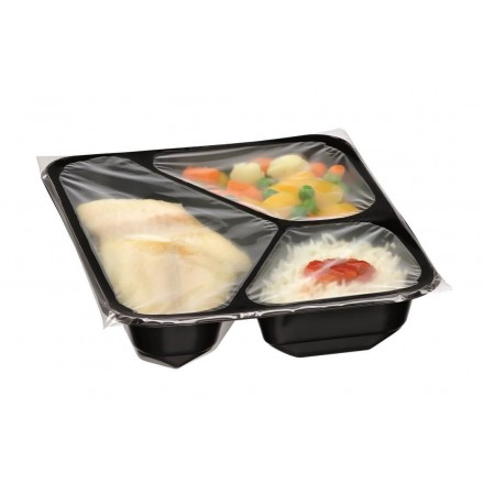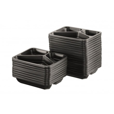 Set of 50 microwave-compatible black polypropylene trays for caterers, for meal delivery for hot and cold food
