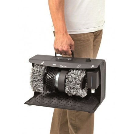The professional electric shoe polisher allows effortless perfect cleaning of shoes by foot control at the push of a button.