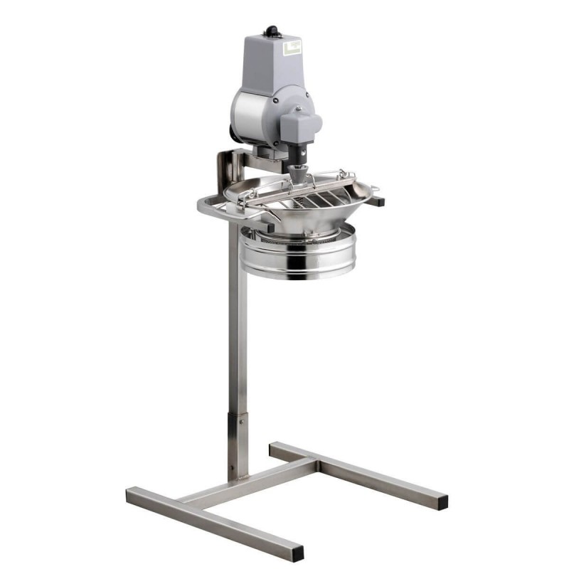 The device has a double crushing function to effortlessly produce large quantities of sauces, coulis, purées, compotes or even vegetable soups, at a yield of 5 kg/min, especially for communities. Supplied with 3mm grid (4 other grids available as accessories)
