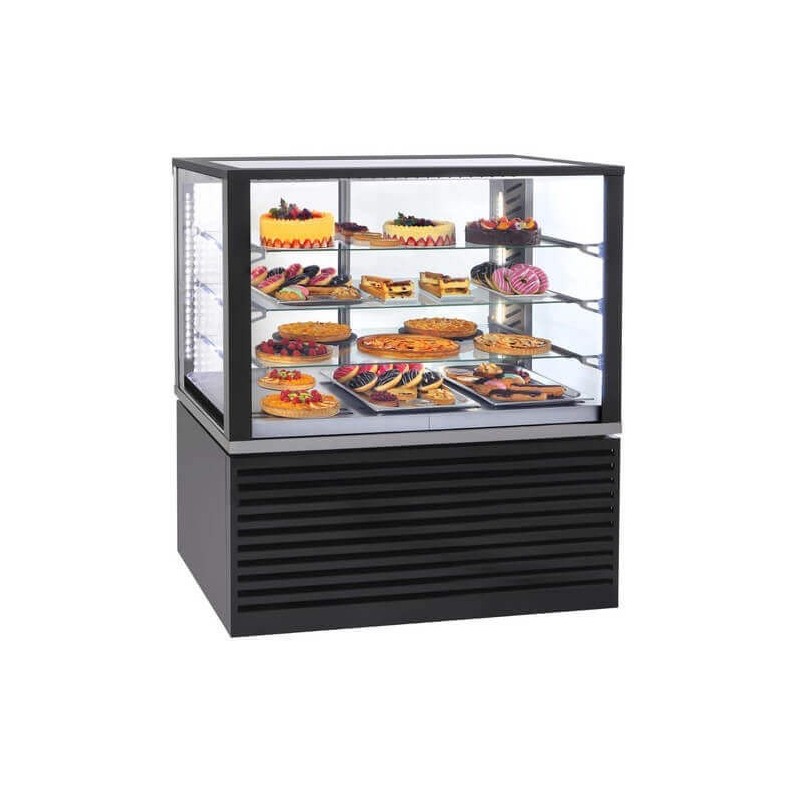 The electronic thermostat allows automatic defrosting every 2 hours. Perfectly insulated, this positive display case is equipped with double-glazed walls and sliding doors. All refrigerated pastry display cases are factory tested at an ambient outside temperature of 29°C.