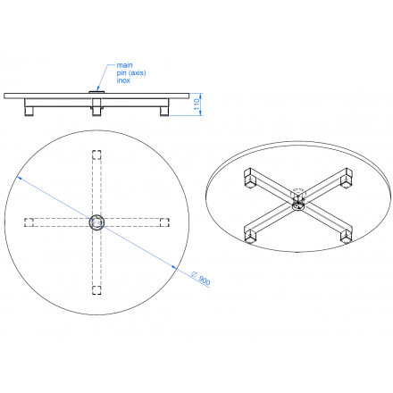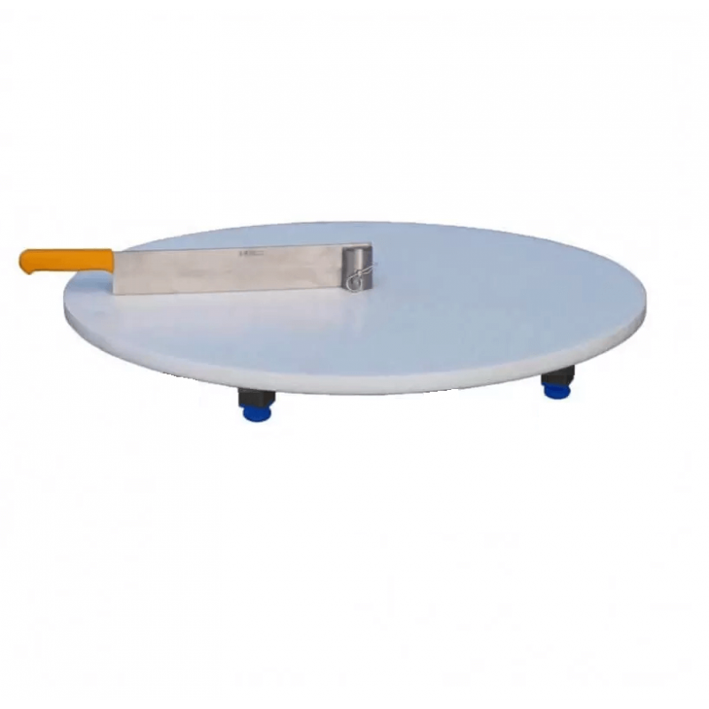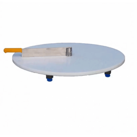 1,339.43 € TTCCutting tray for wheel with poly top HD500 ø900mm thickness 30mm, stainless steel knife articulated and rotating 360°, ideal for cutting cheese