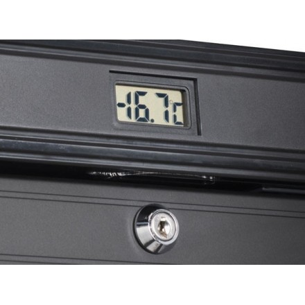 With a capacity of 300L, finished in black and with external square aluminum handle, this product is equipped with an interior vertical LED light, a lock, a digital thermometer display, 5 fixed shelves , a self-closing door and double-layer tempered safety glass.
