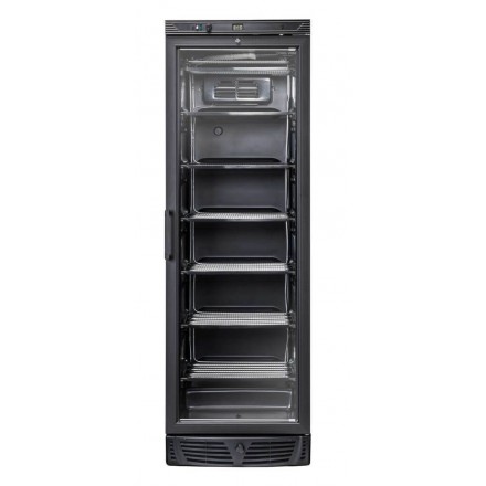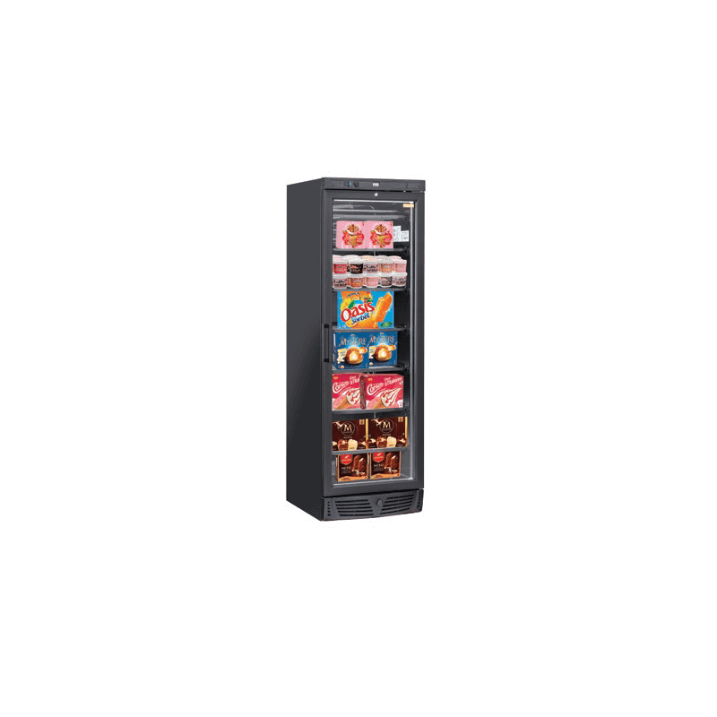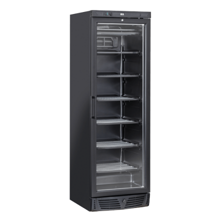 1,775.75 € TTCA 300L upright freezer in black with external aluminum square handle, fitted with a heated glass door with double safety tempered glass, static cooling system with fixed evaporator shelves, lock, self-closing door, inner horizontal LED light with independent switch, mechanical thermostat and digital thermometer display. The TNG 390B model has been designed to be used in multiple ways, always guaranteeing correct food storage for proper display and appreciation of the products inside