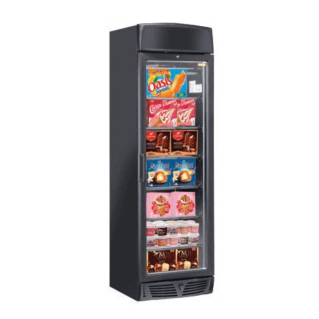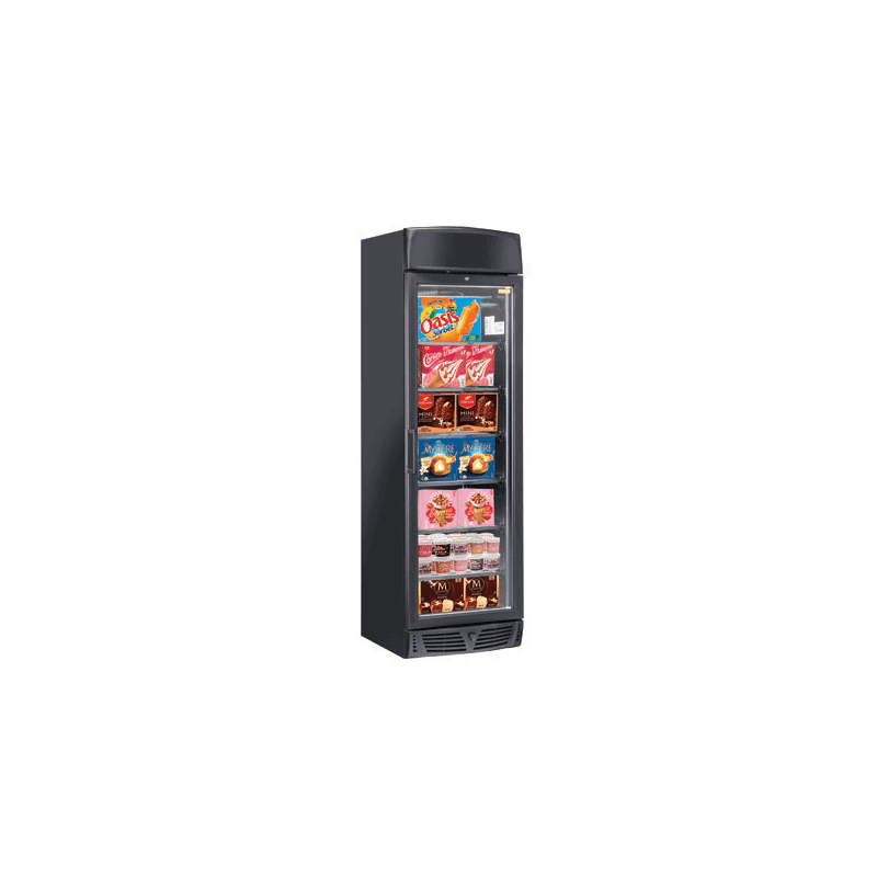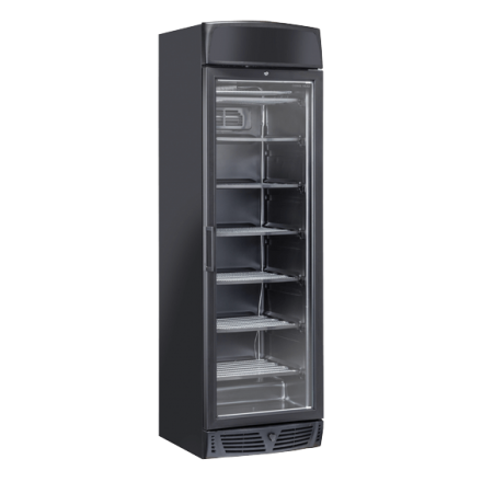1,797.01 € TTCA 300L upright freezer in black with external aluminum square handle, fitted with a heated glass door with double safety tempered glass, static cooling system with fixed evaporator shelves, lock, self-closing door, canopi, inner horizontal LED light with independent switch, mechanical thermostat and digital thermometer display. The TNG 390B model has been designed to be used in multiple ways, always guaranteeing correct food storage for proper display and appreciation of the products inside