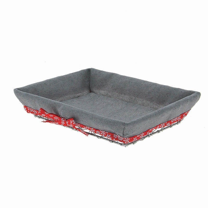 137.41 € TTCSmall model rectangle basket with mesh metal frame, grey fabric and red print ribbon