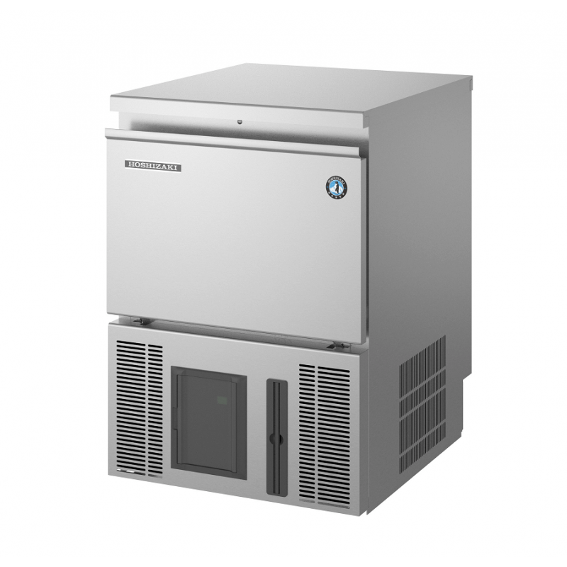 HOSHIZAKI's FM-60KE-HC machine can produce up to 65kg of grain ice in 24 hours, and has a storage bin of approximately 18kg. It connects directly to the water for continuous automated ice cube production, with controlled water consumption since 100% of the water in its circuit is used to make ice, thus optimizing water consumption. .