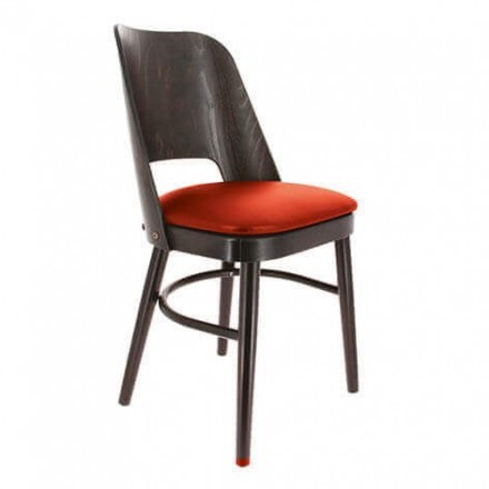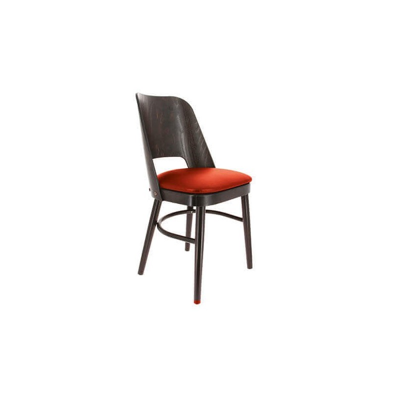Chaise de restaurant d'intérieur en bois avec structure en hêtre massif finition polyuréthan teinte wengé, assise en simili cuir décliné en 5 teintes au choix, assisse hauteur 48cm rembourrée avec mousse