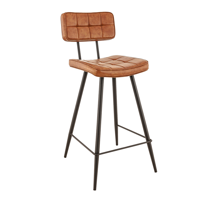 The MAURICE BST65 high chair will elegantly furnish your dining room thanks to its vintage appearance, and its comfortable seat and backrest covered in fire-resistant cognac imitation leather (according to standard EN 1021:1/2).< /p>