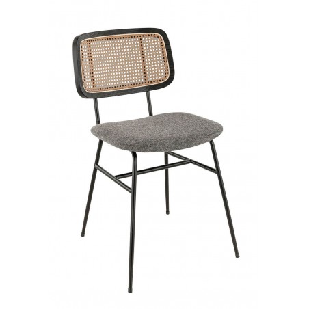 293.52 € TTCRestaurant chair with foam-filled seat covered in gray fabric guaranteeing excellent comfort, plywood back upholstered in natural cane-effect PVC, black metal structure, Martindale 30,000 test (very intensive use fabrics, special for communities , restaurants,...)