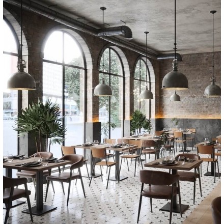 The OLAF armchair is a must-have for chic restaurants and lounge brasseries. It has a seat and back filled with foam making it very comfortable, covered in vintage-style imitation leather, which complies with the fire-resistant standard EN 1021-1 and BS 5852 ensuring the non-ignitability of textiles.