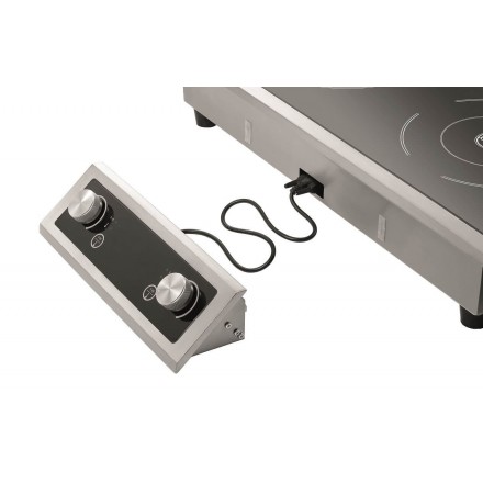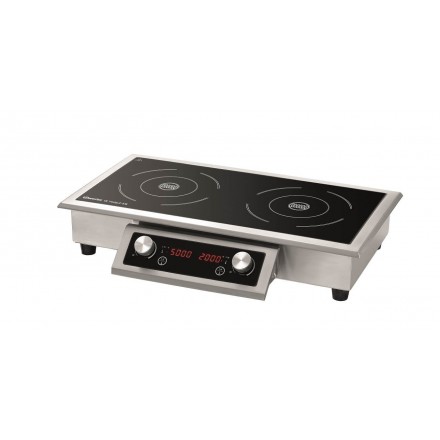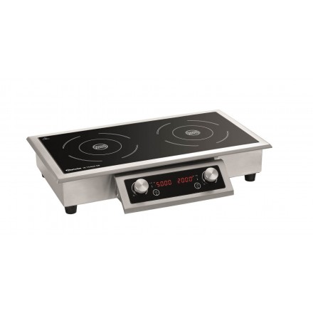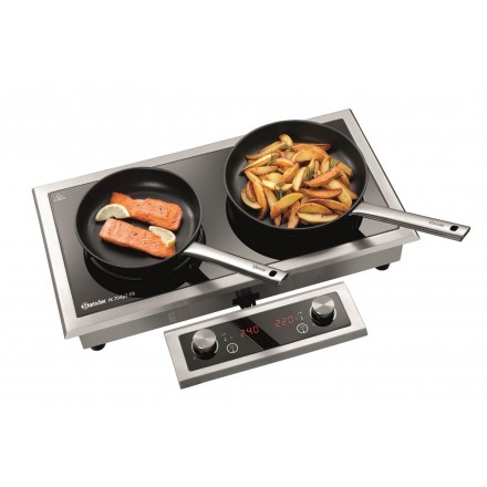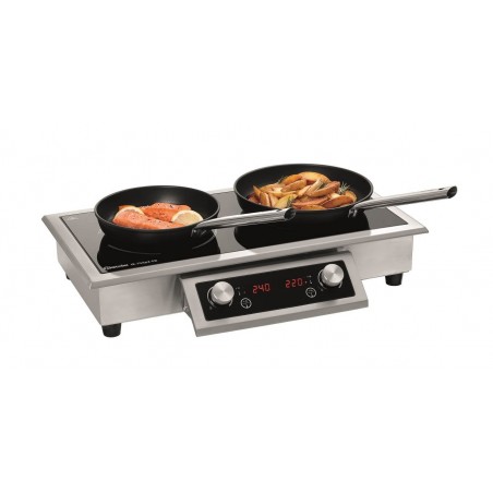 891.52 € TTCBuilt-in induction cooker with separate control panel with digital display, glass surface L645xD315mm with 2 cooking zones ø235mm, temperature adjustable from 60°C to 240°C on 10 levels (20°C intervals) - its power of 7000W can be divided freely between the two cooking zones. For quick cooking or to strongly color food, the left cooking zone can reach 5000W
