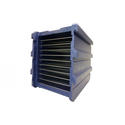 1,043.65 € TTCPack de 2 coffres isothermes à ouverture frontale 10 niveaux en PPE haute densité + embase roulante - Très haut pouvoir isolant (perte d'environ 1° à 2°C/h en liaison chaude ou froide HACCP), pour bacs ou grilles 400x600mm (espacés de 5cm), résiste aux températures de -40°C à +120°C à la compression aux chocs et à l'arrachement, léger et empilable, lavage facile en machine ou au jet, ne prend pas les odeurs, livré sans grille