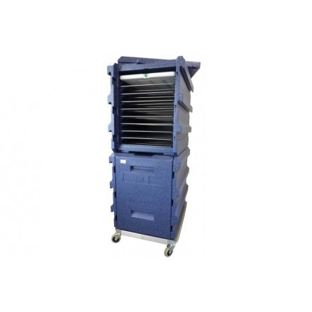Le coffre isotherme à ouverture frontale peut contenir jusqu'à 10 plaques, bacs, ou grilles pâtissières de dimension 400x600mm. Idéal pour les traiteurs, les pâtissiers, boulangers, le conteneur isotherme assurera une liaison des préparations chaudes ou froides, puisque sa conception en PPE (polypropylène expansé) haute densité est extrêmement isolante et la déperdition de chaleur ne sera que de 1 à 2°C à l'heure.