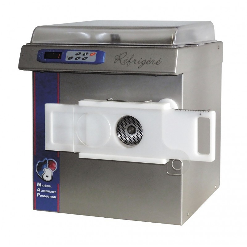 Robust and ultra-efficient, the refrigerated meat grinder offers a high production rate of 350kg/hour for intensive use in butchers, delicatessens or restaurants. It is the flagship instrument of butcher's paraphernalia which corresponds to international quality standards (ISO, NF, CE, RHOS Directive).