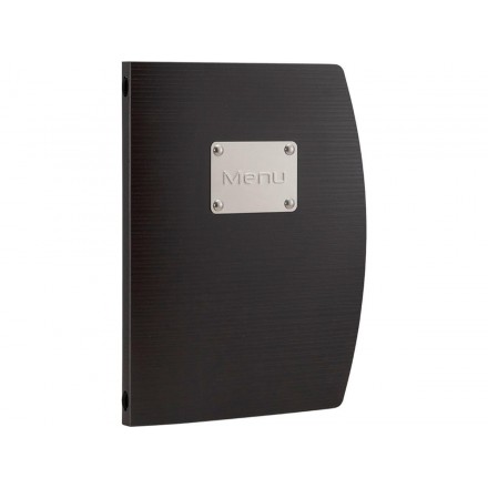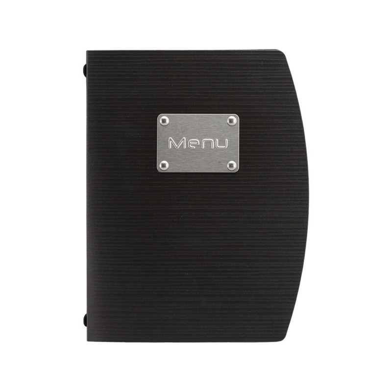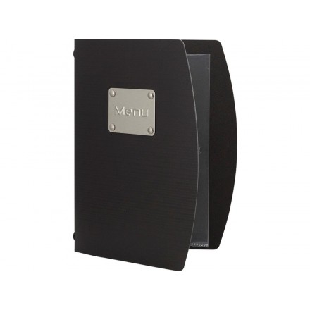 12.46 € TTCBlack RIO menu holder with plastic cover, stainless steel plate with "Menu" inscription, flexible, easy to clean, stain, water and scratch resistant, double transparent insert inside for 2 double-sided A5 sheets