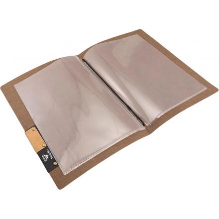 It has a double transparent insert for inserting 2 sheets of A5 format front/back, held in place by an elastic band. Additional inserts are available as an accessory if needed.
