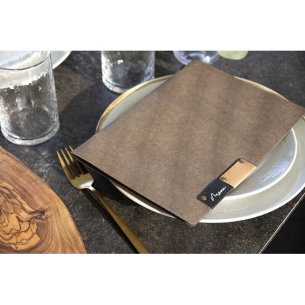 This NATURE menu holder from the Securit brand is entirely made from natural fibers in brown color, ideal for establishments such as restaurants, cafés, bistros, hotels, brasseries, tea rooms,...
