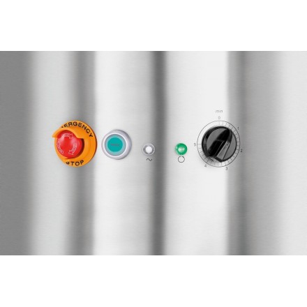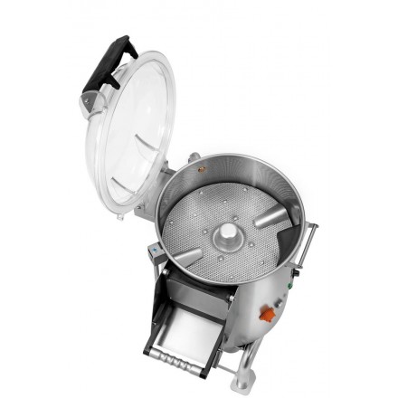 Thanks to the abrasive plate, the device can peel all kinds of raw vegetables such as potatoes, turnips, celery, carrots,... The control panel has a timer from 0 to 5 minutes as well as a discharge button for evacuation of the product at the end of the cycle in the evacuation door.