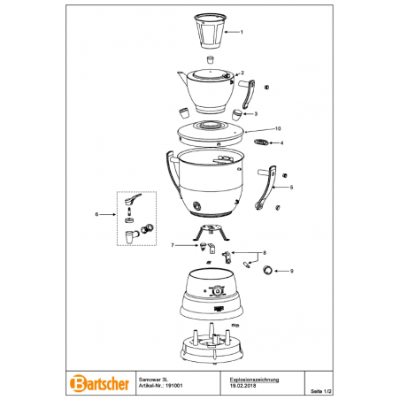 Robinet complet pour samovar BARTSCHER (A191001) L70xP90xH25mm, poids 0.08kg - Les pièces détachées ne sont ni reprises ni échangées. Merci de bien vérifier que la pièce corresponde à votre besoin selon la vue éclatée et qu'elle soit également compatible à la marque de votre appareil.
