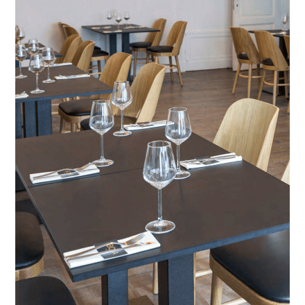 Décliné en 3 tailles, le plateau possède une épaisseur 20mm avec chants PVC assortis. Il est conçu pour un usage en intérieur, et sera tout à fait adapté pour des salles de restaurant, des bars, snacks, bistros, brasseries, cafés,...