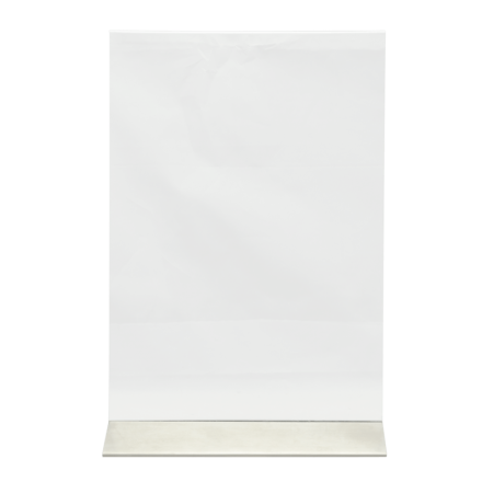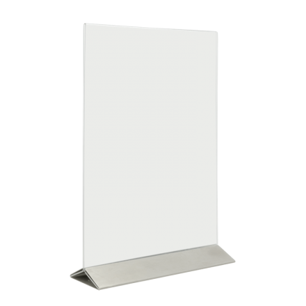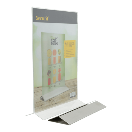 The Securit brand INOX table poster holder is made with a weatherproof stainless steel base, with a transparent A4 size insert in double-sided acrylic.
