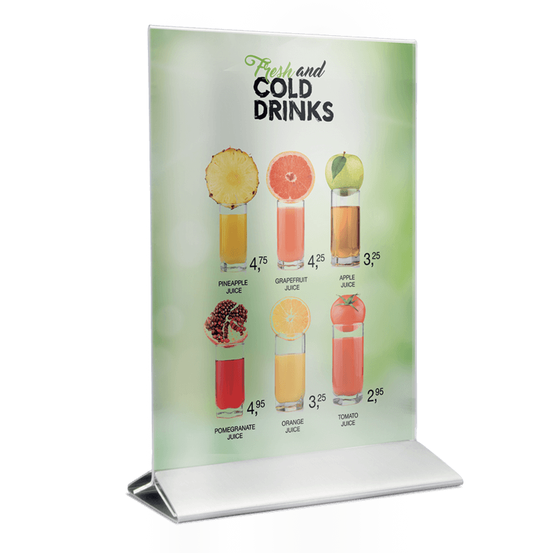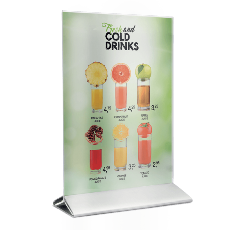 19.92 € TTCPoster frame with weatherproof stainless steel base, double-sided easy-to-clean acrylic surface in A4 format, ideal for signage in restaurants and breweries, very stable